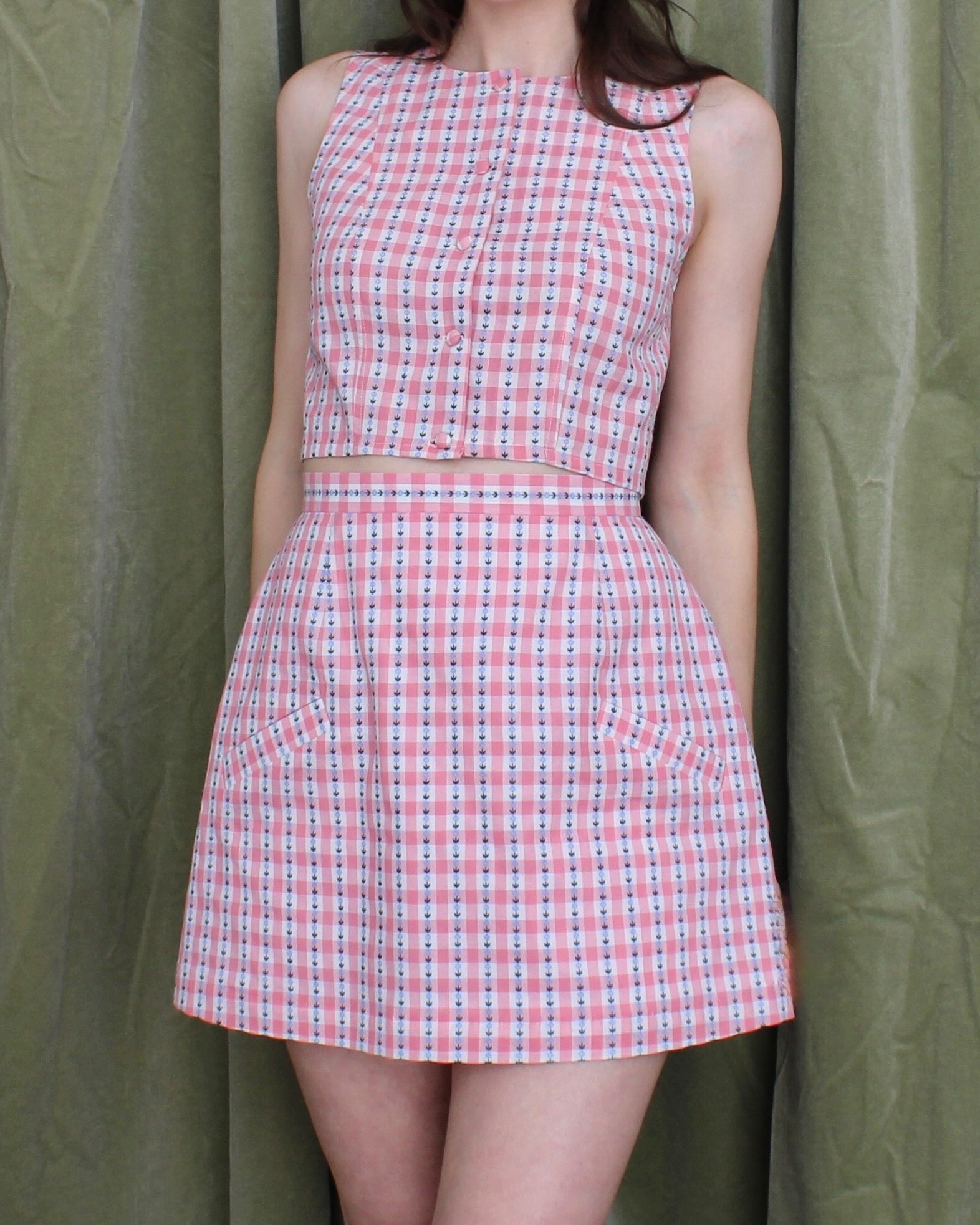 Ready-to-ship Polly top cropped blouse - Pink embroidered check